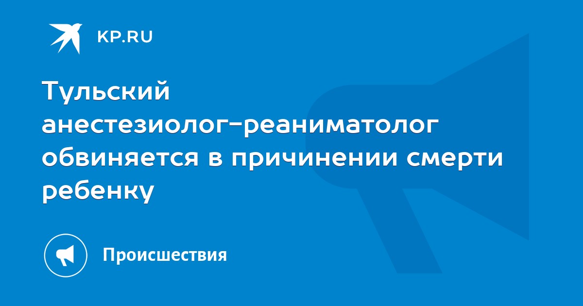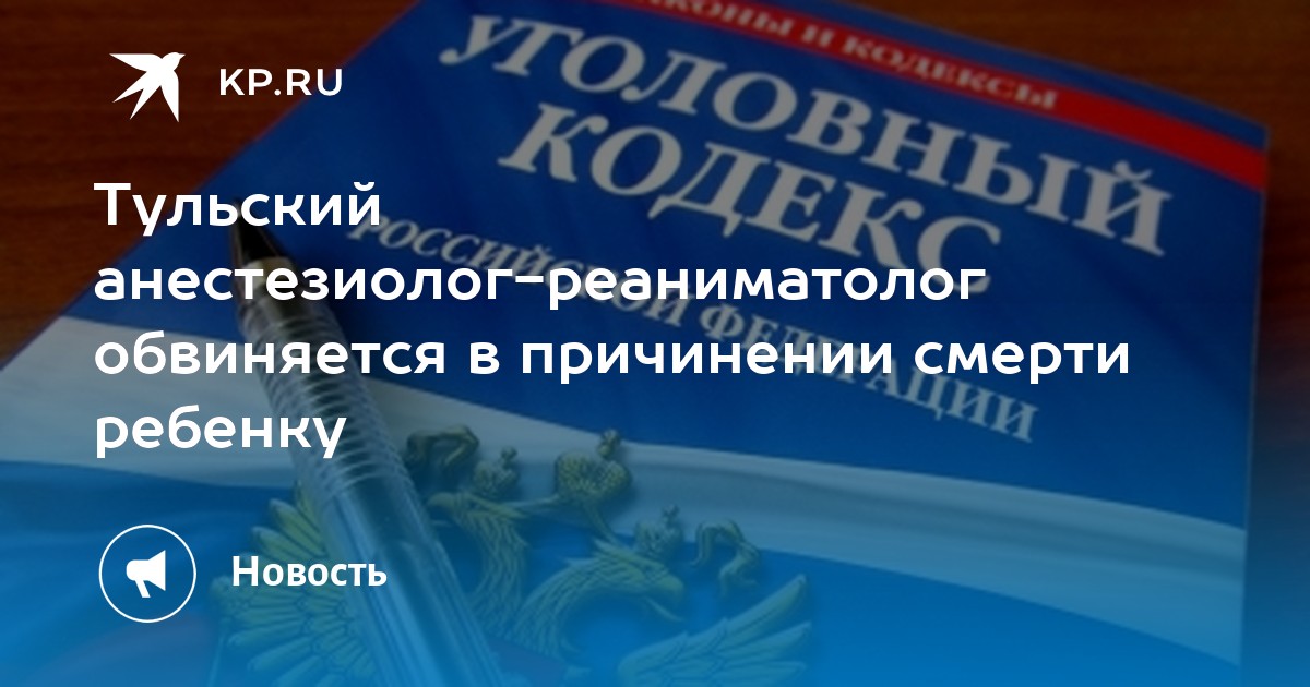 Следователи СУ СКР по Тульской области расследуют уголовное дело, возбужденное в отношении тульского врача-анестезиолога-реаниматолога. Мужчина обвиняется в причинении смерти по неосторожности ребенку.
